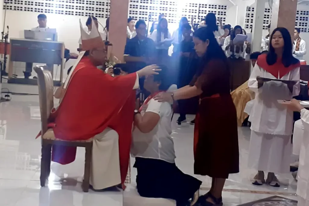 Mgr. Robertus Rubiyatmoko, Uskup Agung Keuskupan Agung Semarang menerimakan Sakramen Penguatan kepada 87 umat di Paroki Tyas Dalem Gusti Yesus Macanan