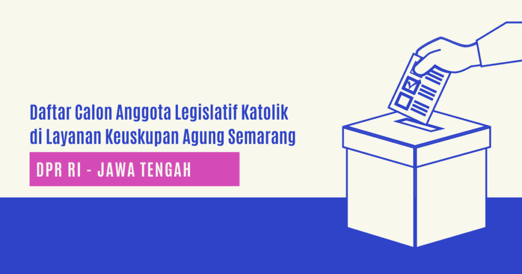 CALON ANGGOTA LEGISLATIF BERAGAMA KATOLIK DI LAYANAN KEUSKUPAN AGUNG SEMARANG CALON LEGISLATIF ANGGOTA DPRD KABUPATEN KUDUS Dapil Kursi Cakupan Daerah Pemilihan (Kecamatan) Calon Legislatif No. Parpol Parpol Nama No. Urut Asal Paroki 1 11 kursi Kota Kudus, Jati 2 Gerindra Valerie Yudistira Pramudya 2 St. Yohanes Evangelista, Kudus 3 PDIP Theresia Ernie Andriani, […]