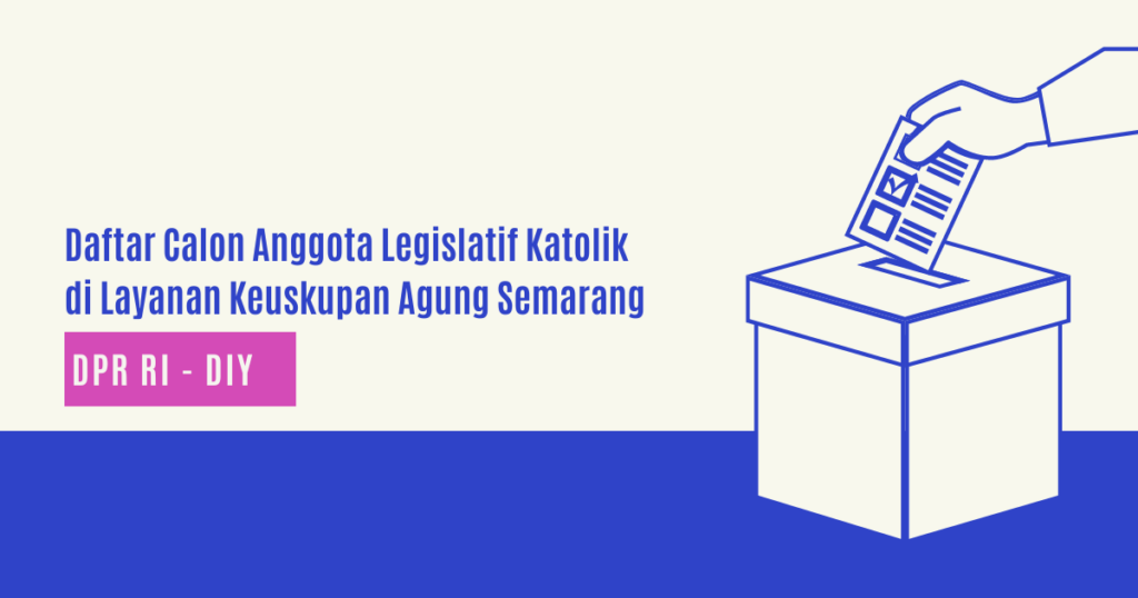 CALON ANGGOTA LEGISLATIF BERAGAMA KATOLIK DI LAYANAN KEUSKUPAN AGUNG SEMARANG CALON LEGISLATIF ANGGOTA DPR RI BERBASIS DAERAH PEMILIHAN DAERAH ISTIMEWA YOGYAKARTA Daerah Pemilihan DIY Cakupan Dapil: Kota Yogyakarta, Kab Bantul, Kab Kulonprogo, Kab Sleman, Kab Gunung Kidul Alokasi kursi: 8 kursi Calon Legislatif No. Parpol Parpol Nama No. Urut Asal Paroki 3 PDIP […]