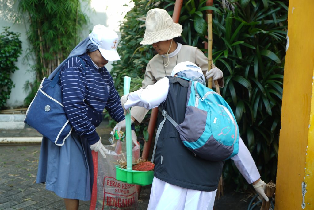 Dengan bekal sapu lidi, kantong sampah, alat pungut sampah, para Suster dan Bruder menyebar di sepanjang Jalan Letjen Suprapto bersama kelompok yang sudah ditentukan sebelumnya. Setelah itu, para Suster dan Bruder menuju Polder Tawang untuk bersiap menuangkan Eco Enzyme yang sudah disiapkan bersama-sama dengan Romo J.B. Rudy Hardono, Pr., Vikep Semarang.
