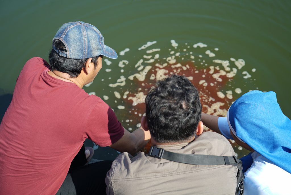 Perwakilan Romo, Bruder, dan Suster mengawali penuangan Eco Enzyme di Polder Tawang