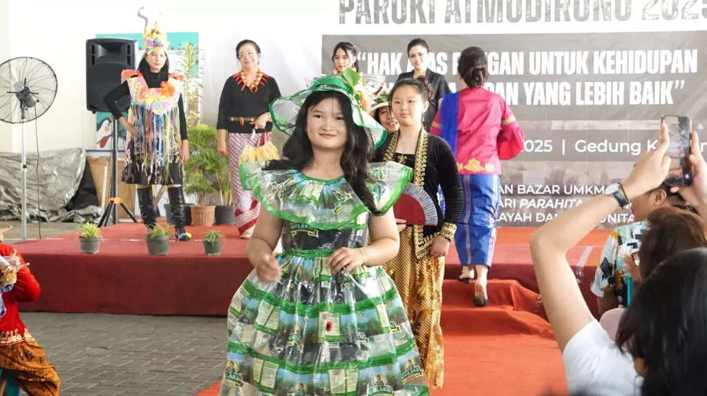 Inilah Fashion Show Daur Ulang, acara yang menyemarakkan Peringatan Hari Pangan Sedunia (HPS) 2025 Paroki Keluarga Kudus Atmodirono Semarang, Minggu (19/10/2025).