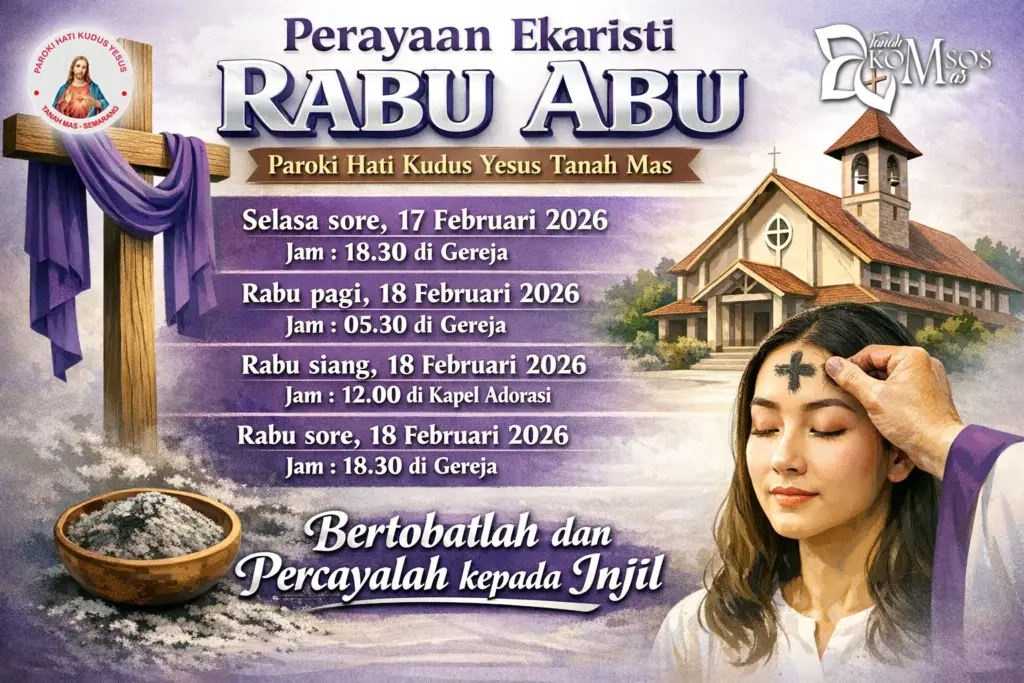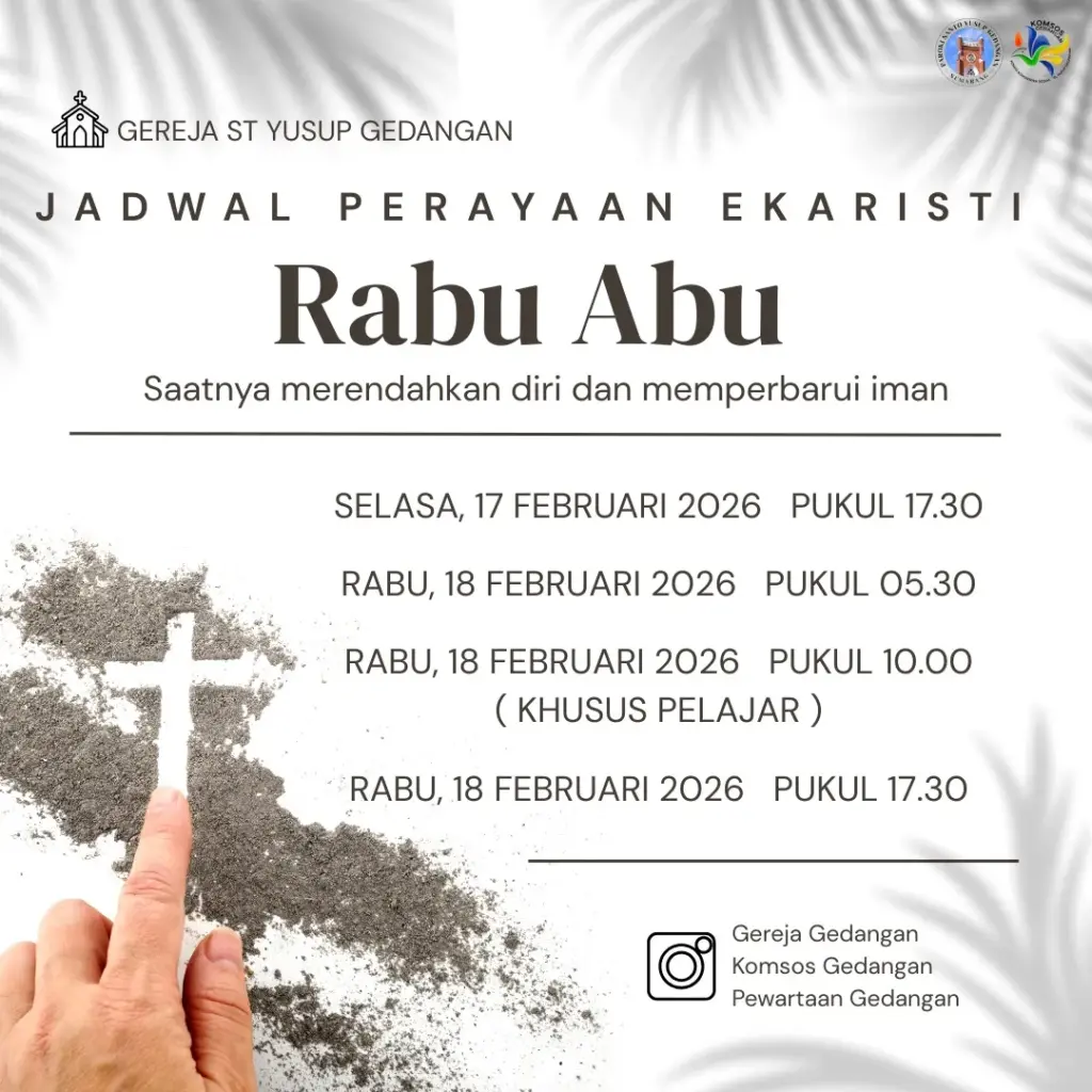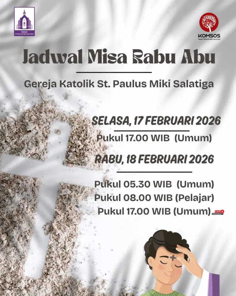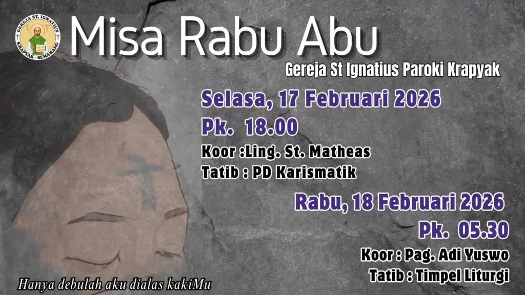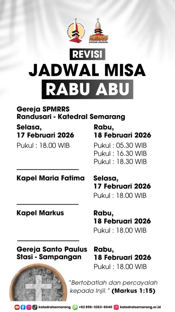 Semarang – Sebentar lagi kita akan memasuki masa Pra Paskah 2026 yang ditandai dengan penerimaan Abu di dahi kita. Berikut jadwal Misa Rabu Abu 2026 Paroki-Paroki di Kevikepan Semarang.