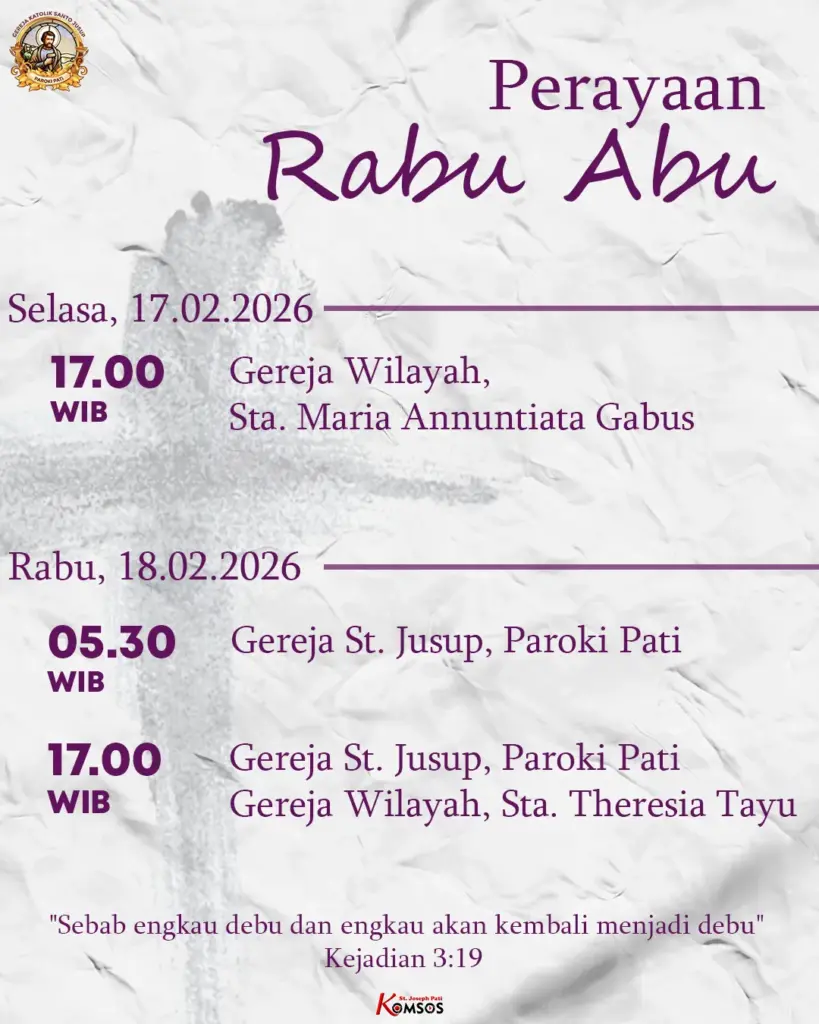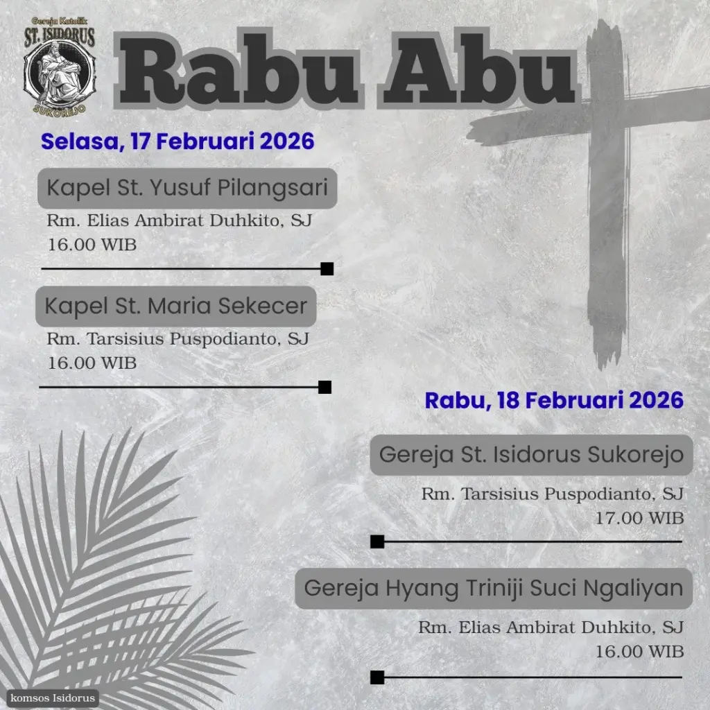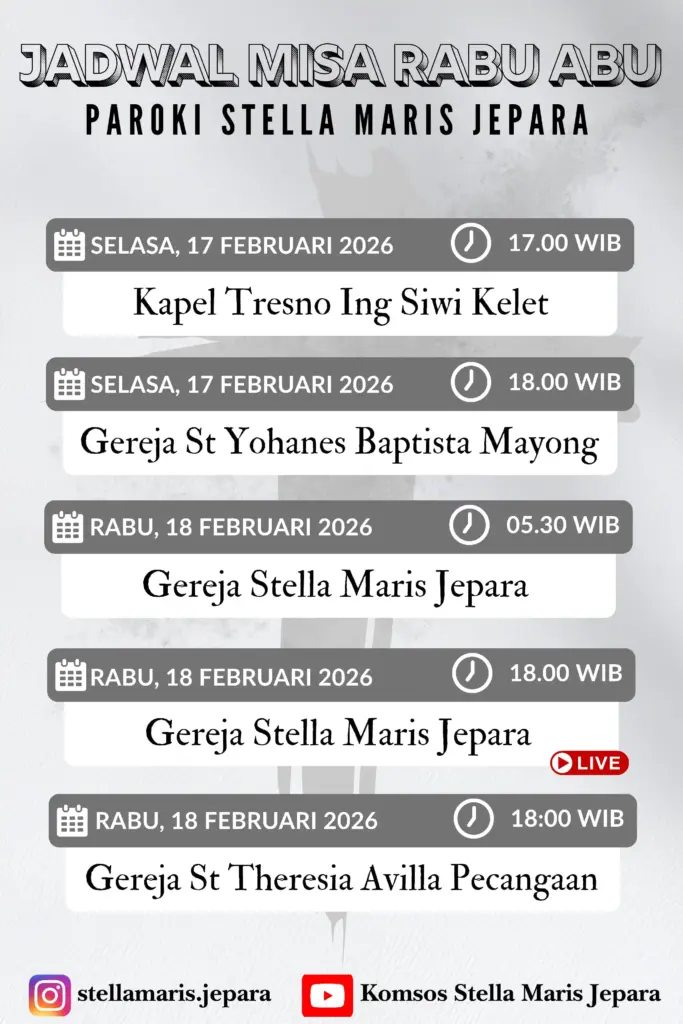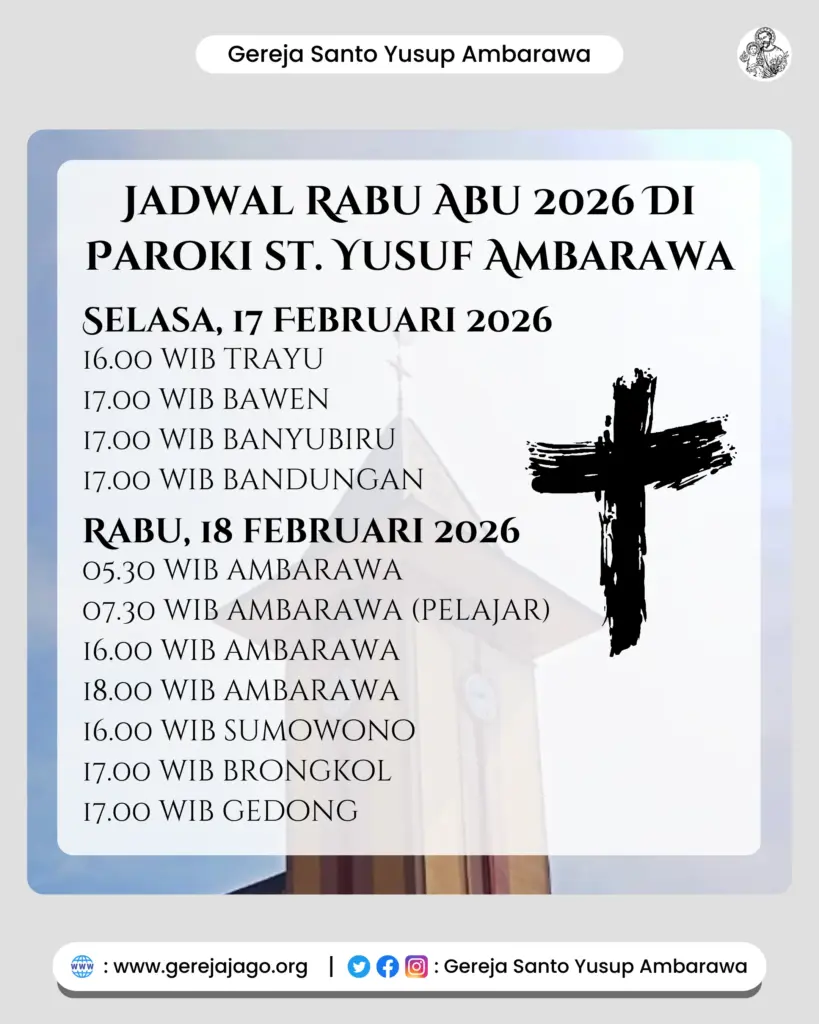 Semarang – Sebentar lagi kita akan memasuki masa Pra Paskah 2026 yang ditandai dengan penerimaan Abu di dahi kita. Berikut jadwal Misa Rabu Abu 2026 Paroki-Paroki di Kevikepan Semarang.