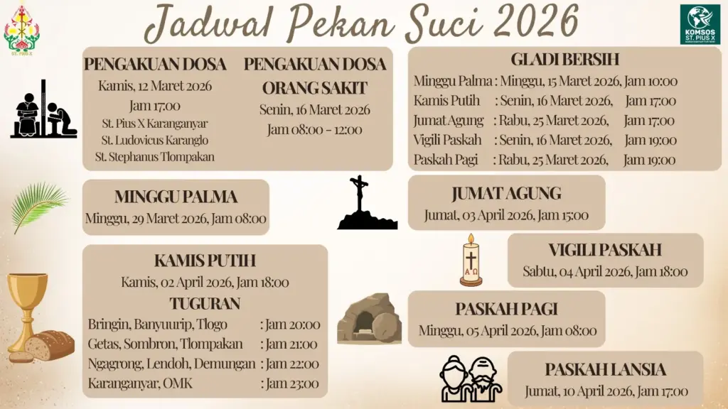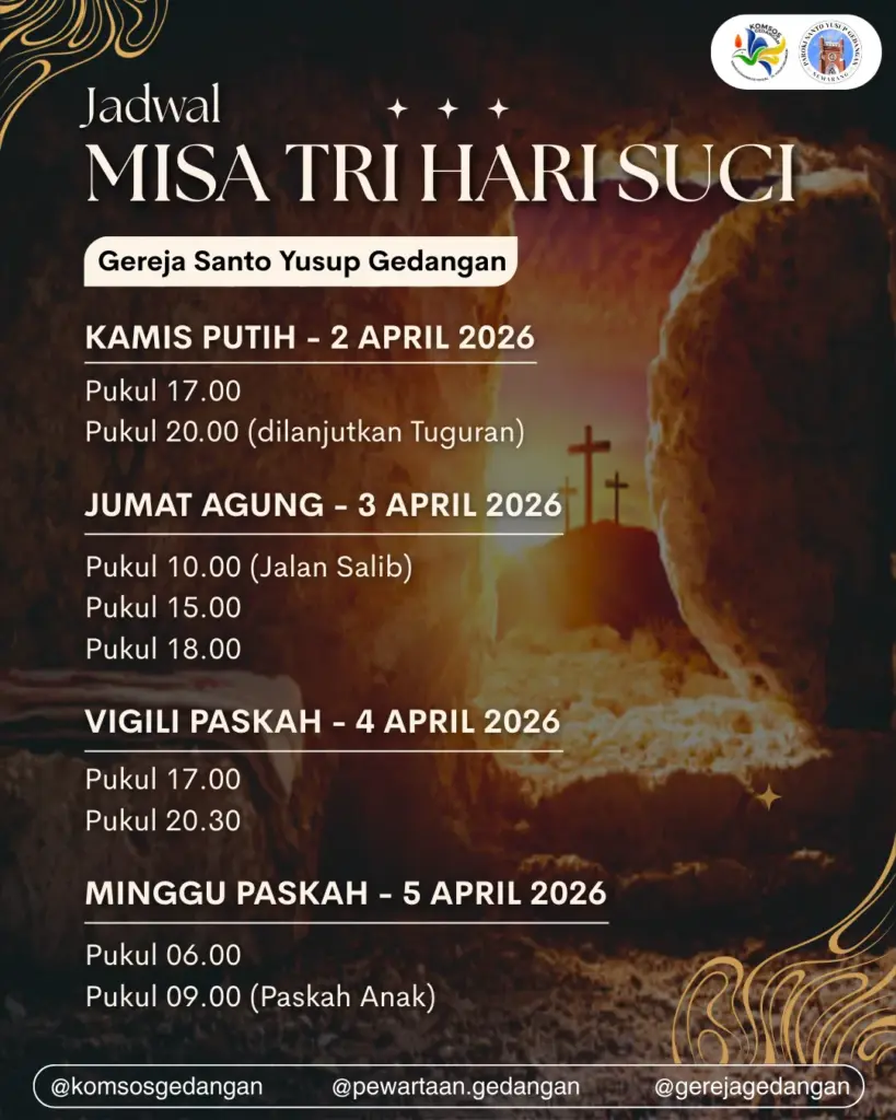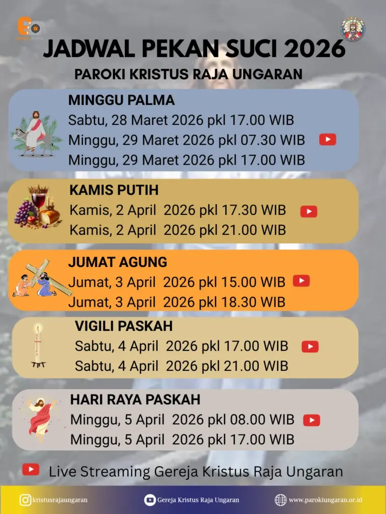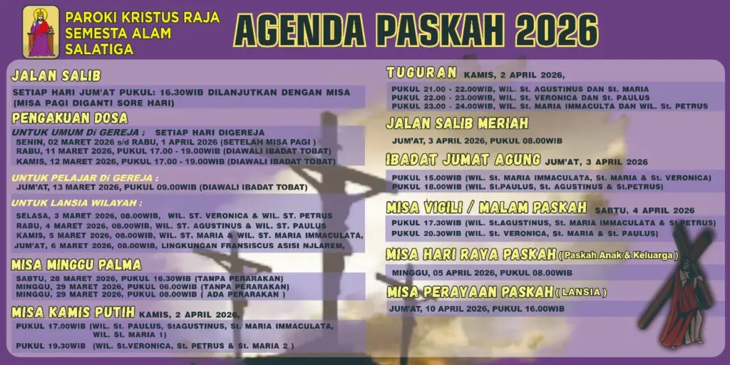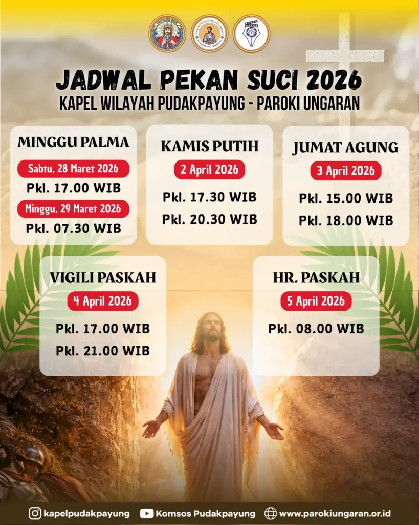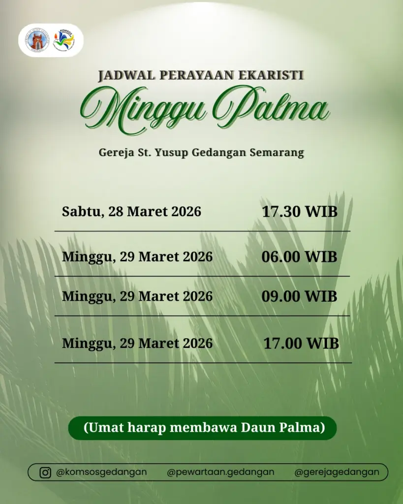 Berikut adalah jadwal Perayaan Ekaristi Pekan Suci 2026 di Gereja Katolik se-Kevikepan Semarang yang sudah dikelompokkan berdasarkan Rayon yang ada di Kevikepan Semarang.
