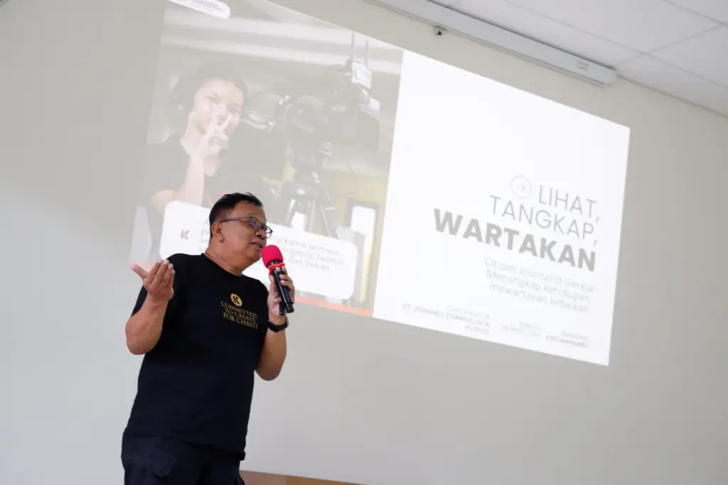 Bapak Kriswandaru mengajak anggota Komsos Kudus untuk upgrade skill fotografi dan jurnalistik dengan cara ‘Lihat, Tangkap dan Wartakan’. Komsos Kudus diajarkan teknik dasar dan juga etika sebagai citizen jurnalis Gereja. Setelah menyampaikan teori, bapak Kriswandaru mengajak peserta untuk praktik secara langsung dalam mengambil gambar dan membuat caption yang bercerita, kemudian hasilnya dinilai bersama.