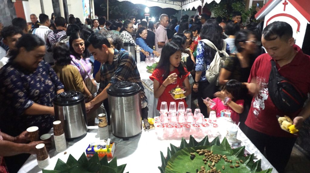 Dalam sekejap 350 piring bubur sura dan jajan pasar habis dalam Pesta Umat. (dok Elwin)