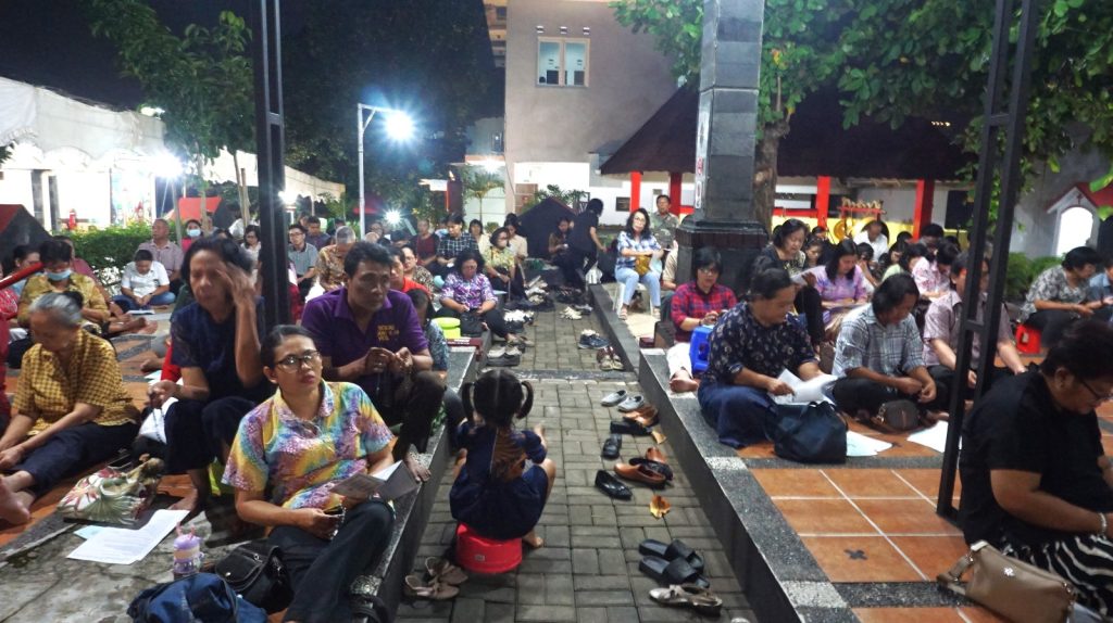 Suasana khidmat dan penuh kekhusyukan menyelimuti pelataran Gua Maria Talanging Sih, Tegalsari, Paroki Keluarga Kudus Atmodirono, Kamis malam (26/6).