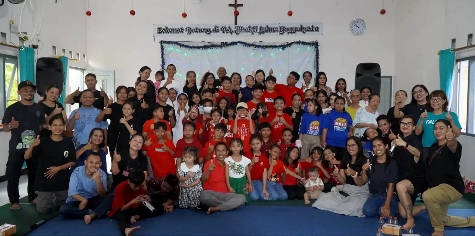 Komuni Pertama Paroki Santo Alfonsus de Liguori Nandan bersama orang tua dan pendamping melakukan kegiatan outing ke Panti Asuhan Bhakti Luhur Berbah, Kalasan, Sleman