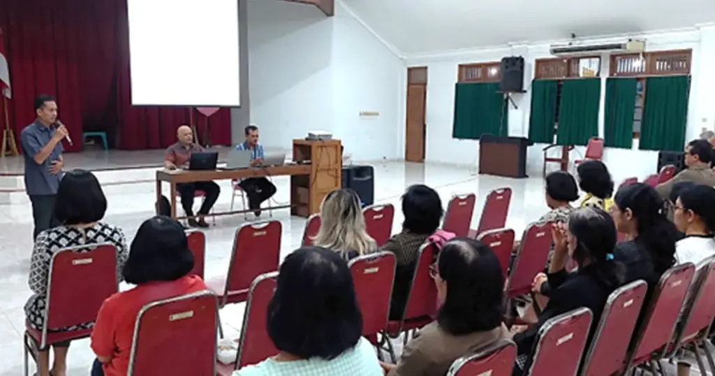 PAROKI KUMETIRAN – Paroki Hati Santa Perawan Maria Tak Bercela Kumetiran menggelar agenda pembekalan bagi para Ketua Wilayah, Ketua Lingkungan, dan Sekretaris Lingkungan pada Senin (23/2/2026) malam. Bertempat di Aula Atas Paroki, kegiatan yang berlangsung pukul 18.30 hingga 21.00 WIB ini bertujuan memperkuat kapasitas kepemimpinan pastoral berbasis komunitas bagi para pengurus di tingkat akar rumput.