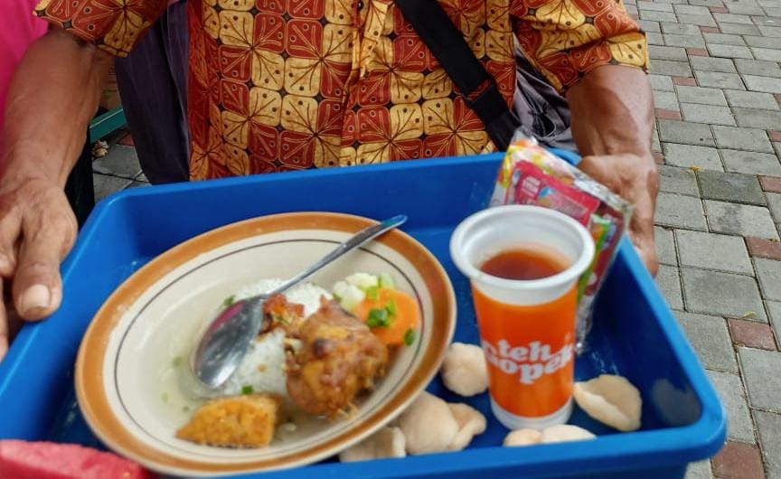 Sebanyak 300 orang menerima sepaket makan siang bergizi di atas baki. (Foto Pan)