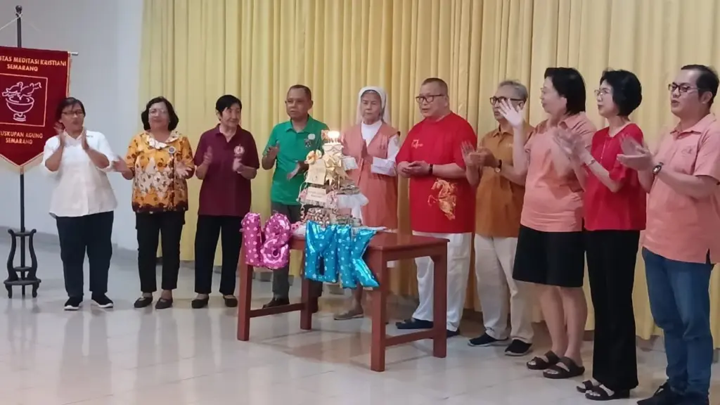 Atmodirono – Di tengah kehidupan yang semakin hiruk pikuk, keheningan menjadi ruang penting bagi umat untuk berjumpa dengan Tuhan. Semangat inilah yang dihidupi oleh komunitas Meditasi Kristiani (MK) di Kota Semarang. Hal tersebut disampaikan oleh Romo Aloysius Lioe Fut Khin, MSF dalam perayaan Hari Ulang Tahun (HUT) ke-18 Meditasi Kristiani Semarang yang digelar di Gereja Keluarga Kudus Atmodirono, Jumat (27/2/2025).