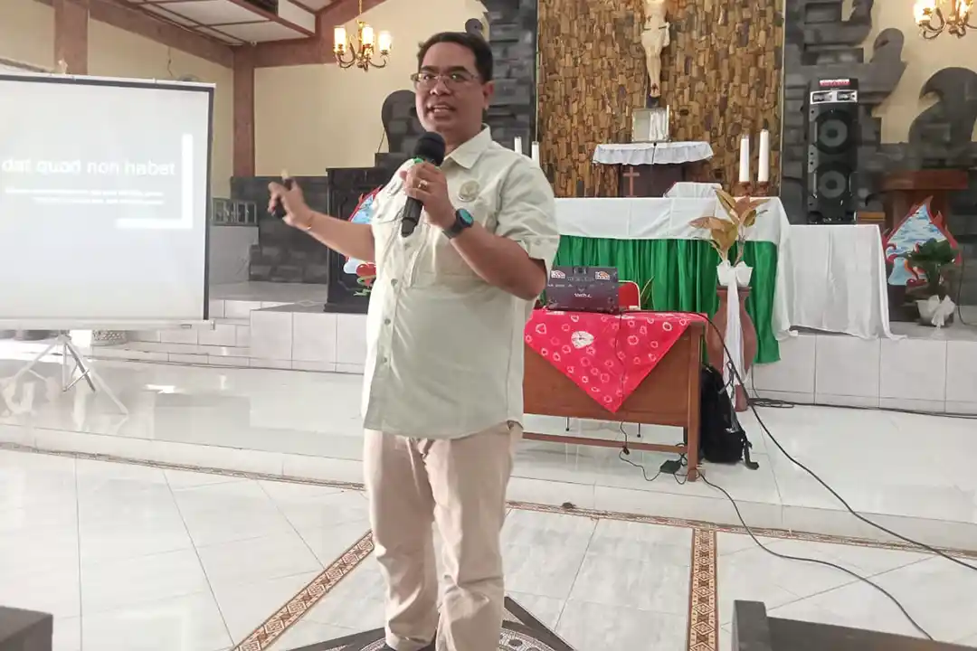 Pembicara rekoleksi keluarga, Romo Fransiscus Anggras Prijatno, MSF saat memaparkan pendidikan iman anak adalah tanggung jawab keluarga