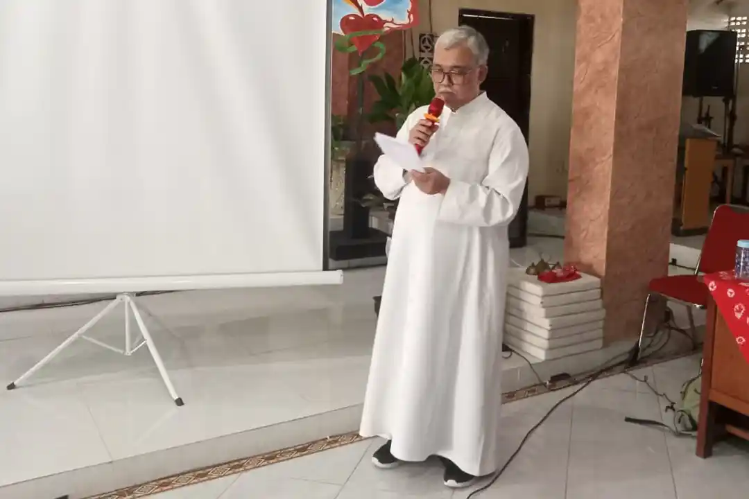 Romo Paroki Tyas Dalem Gusti Yesus Macanan, Romo Agustinus Tejo Kusumantono saat memberikan sambutan dalam acara rekoleksi keluarga