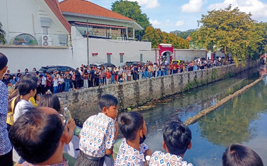 Usai misa, para siswa melakukan penuangan eco enzym di sungai depan gereja sebagai wujud konkret kepedulian terhadap lingkungan hidup. Sebelum penuangan, Romo Wito menyampaikan kata pembuka yang mengingatkan bahwa bumi adalah rumah bersama yang harus dijaga demi masa depan yang berkelanjutan.