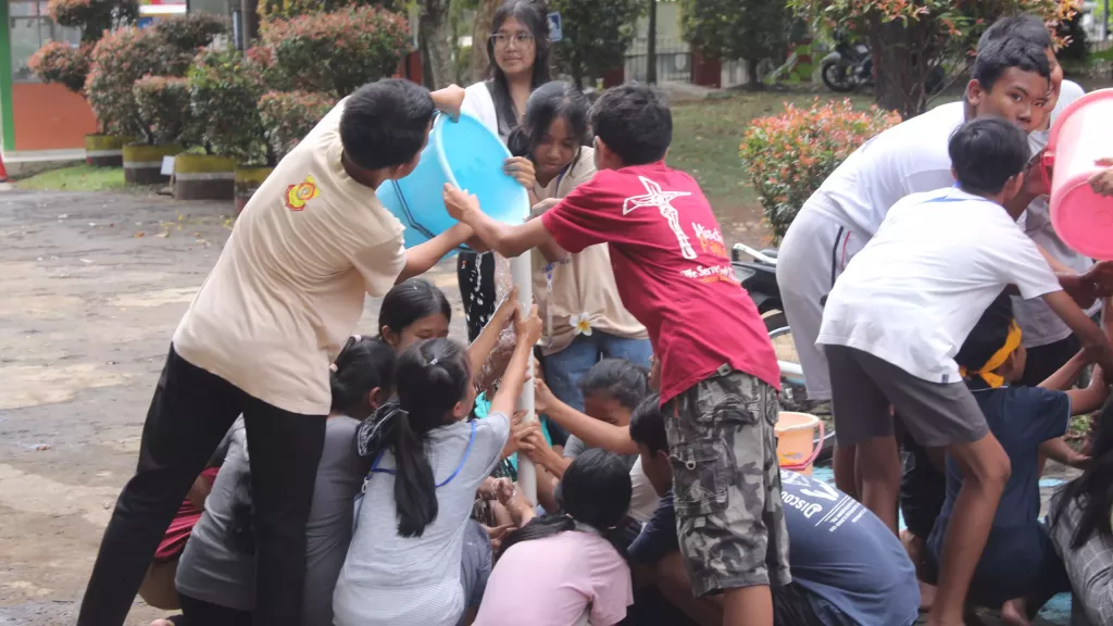 Namun, keasyikan tidak berhenti di situ, karena sesekali suasana diwarnai dengan nyanyian ceria dan mini games yang menyegarkan, membuat semua peserta semakin semangat dan nyaman. Setelah materi, kegembiraan berlanjut dengan serangkaian outbond seru yang terdiri dari 5 pos tantangan dan 1 game besar yang semakin memeriahkan suasana. Gelak tawa dan sorak sorai tak henti mengiringi setiap aktivitas, membuktikan betapa eratnya persahabatan dan kebersamaan yang terjalin di antara anak-anak Misdinar.