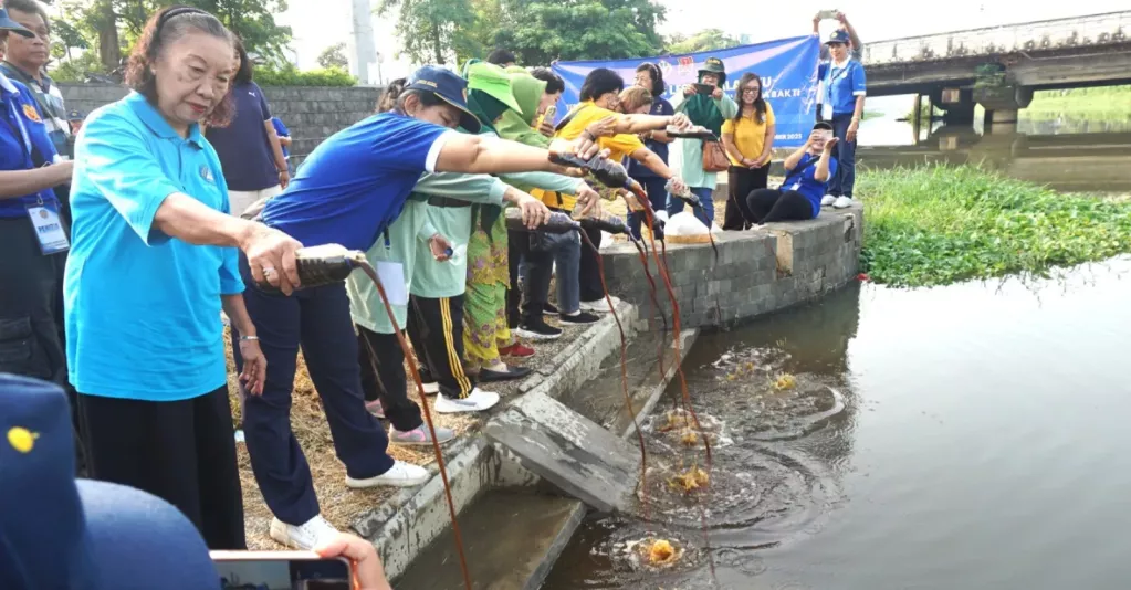 Dalam kegiatan tersebut, para peserta melakukan kerja bakti membersihkan area sungai, menebar 10 ribu benih ikan (nila dan tawes), menuangkan ratusan botol eco enzyme, dan melakukan pilah sampah plastik sebagai upaya menjaga ekosistem sungai dan meningkatkan kesadaran masyarakat terhadap pengelolaan sampah. Kegiatan ini difasilitasi oleh Kesbangpol Kota Semarang. Sedangkan benih ikan merupakan bantuan dari Dinas Perikanan Kota Semarang.